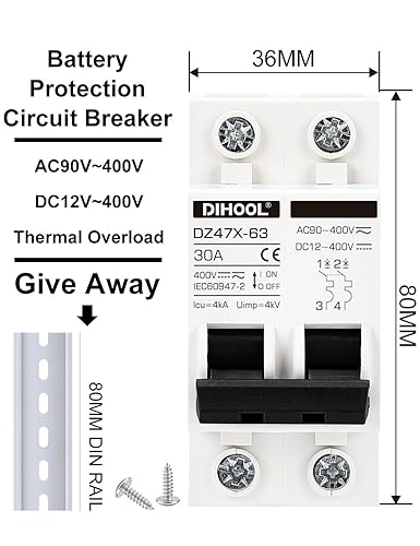 FUNCTIONS: Used to protect 12~400VDC OR 90~400VAC circuit from overload and short circuit damage, and can also be used for control and isolation. Size: 36MM x 80MM x 75MM, Fit for 35mm DIN rail.
